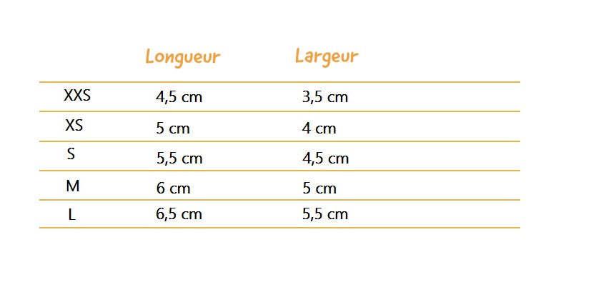 Tableau des tailles
