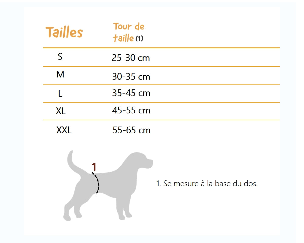- Pour des raisons hygiéniques, veuillez changer régulièrement la culotte de votre chien.