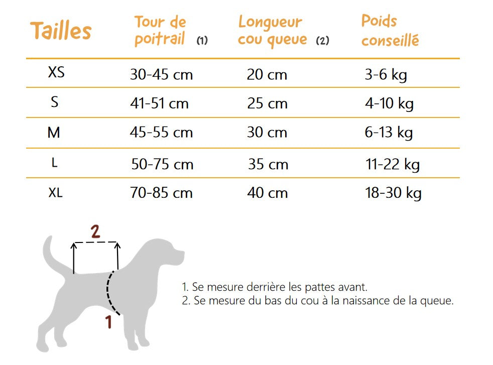 Si vous hésitez entre deux tailles, privilégiez la taille supérieure.