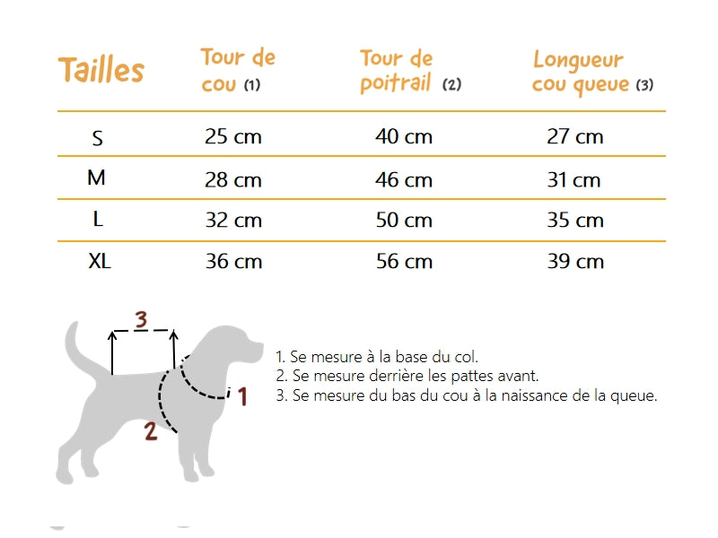 Tableau des tailles