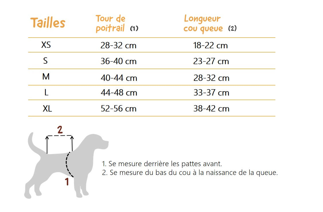 Tableau des tailles
