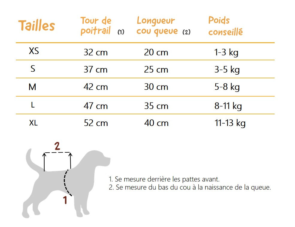 Tableau des tailles
